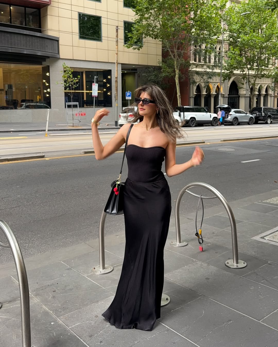 Sometimes the simplest looks make the biggest impact. A fitted black dress like this does exactly that, hugging the silhouette while keeping the styling clean and minimal.