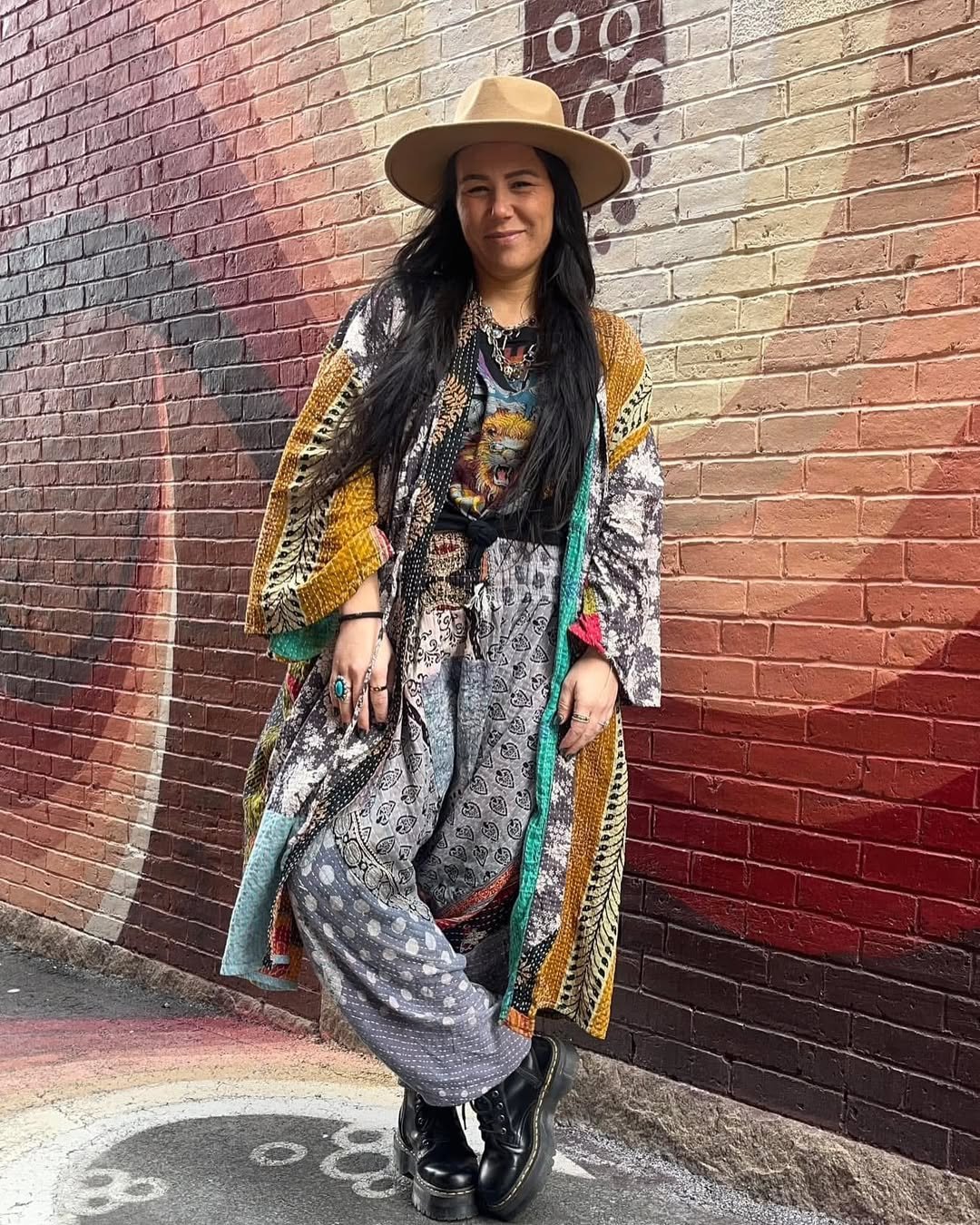 You could wear this to a local art fair, a slow Sunday brunch, or even styled up with a long coat for that layered boho effect.