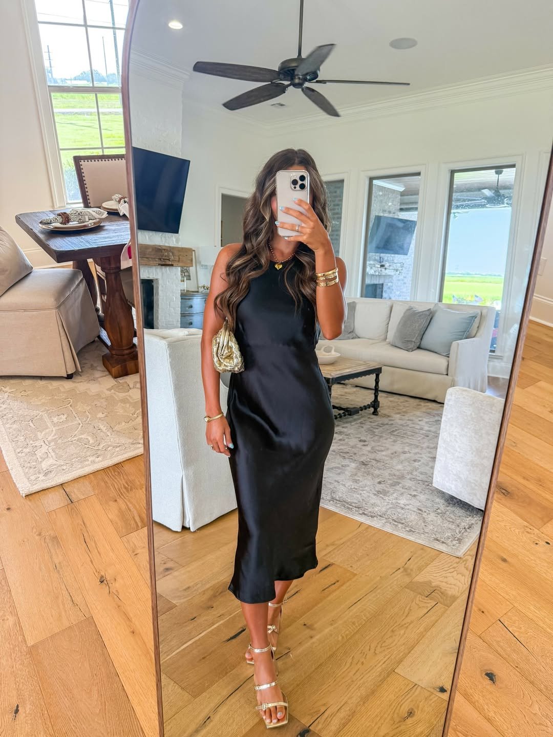 I love how it balances comfort and glam. The fabric moves, it breathes, it flows, yet still feels refined. Add a textured clutch or a sleek ponytail to keep it modern and intentional. It’s giving understated elegance with just enough shine.