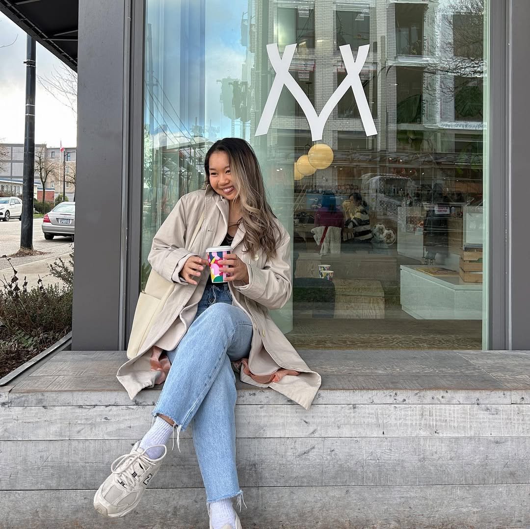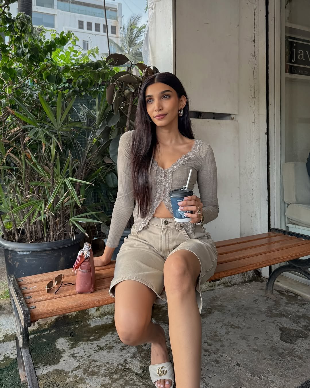 I love how relaxed it feels while still looking intentional. Sitting outside with a takeaway cup, legs crossed, no rush in sight. It is the kind of look that says you planned your outfit, but not too much.