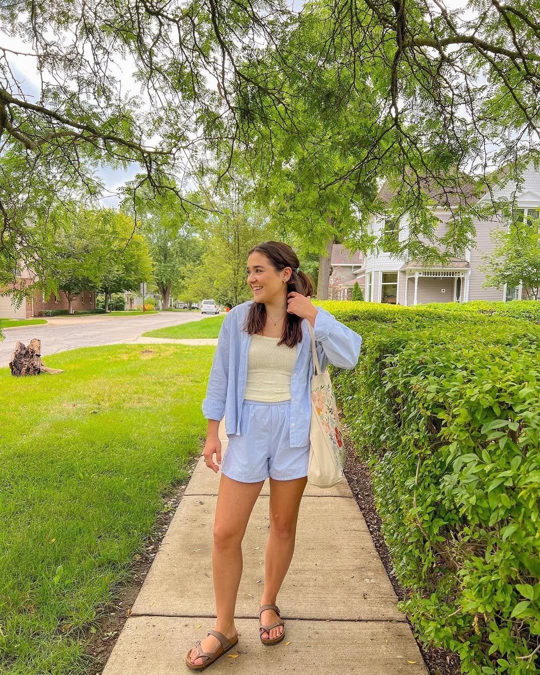 Matching sets always win, and this one is peak effortless. The relaxed shorts and lightweight button-down layered over a fitted tank feel fresh and breathable.