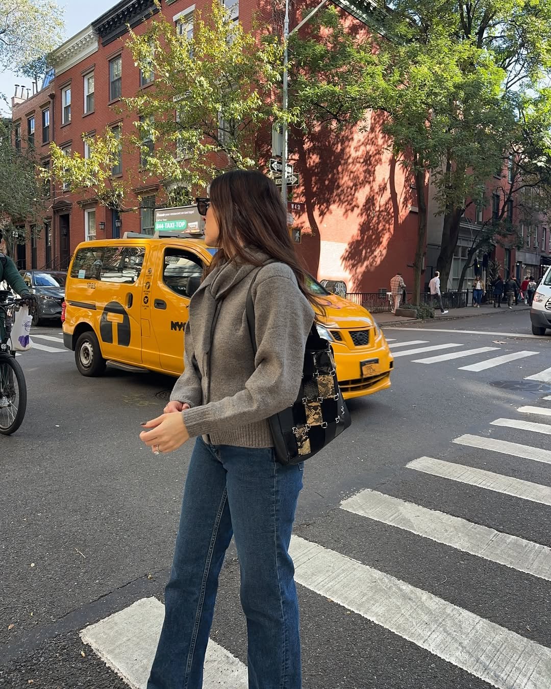 She makes the sidewalk her runway here—casual, yes, but still totally styled. The kind of look that makes you feel like you’ve got your life together, even if you’re just popping out for almond milk.