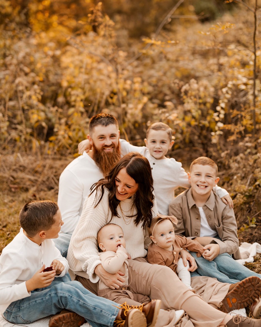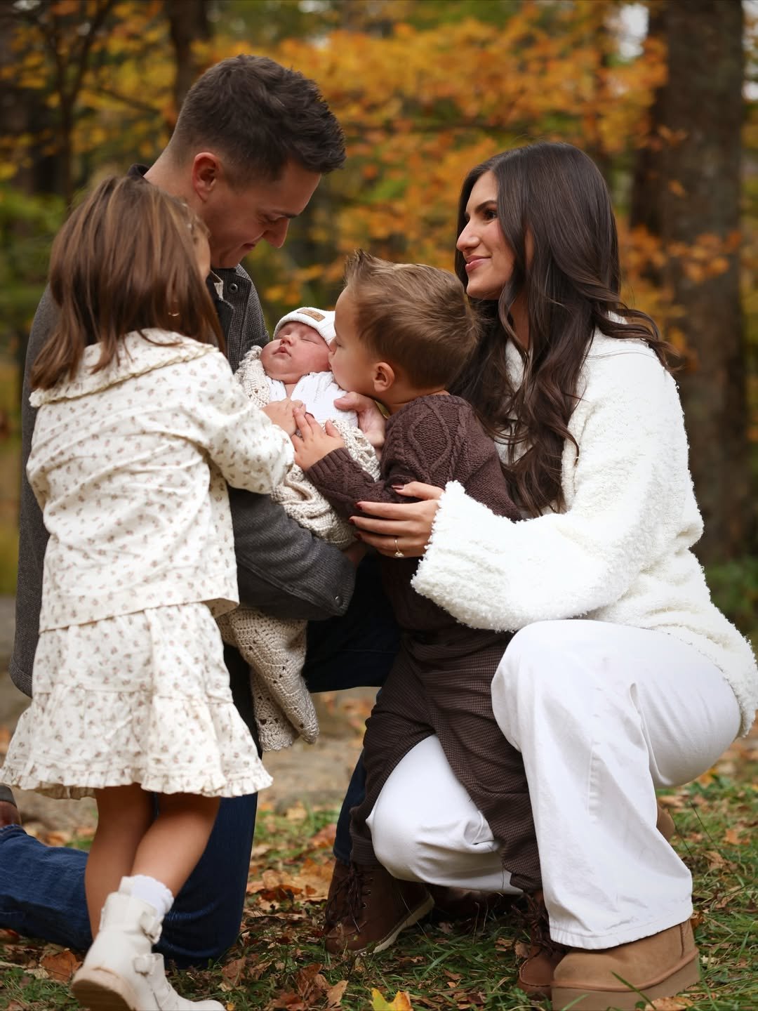 Wrapped in fleece, boots, and corduroy, this family portrait captures the quiet sweetness of new beginnings. The way each child leans in to welcome the tiniest member speaks louder than any styling could—though their autumn-perfect outfits don’t hurt either.