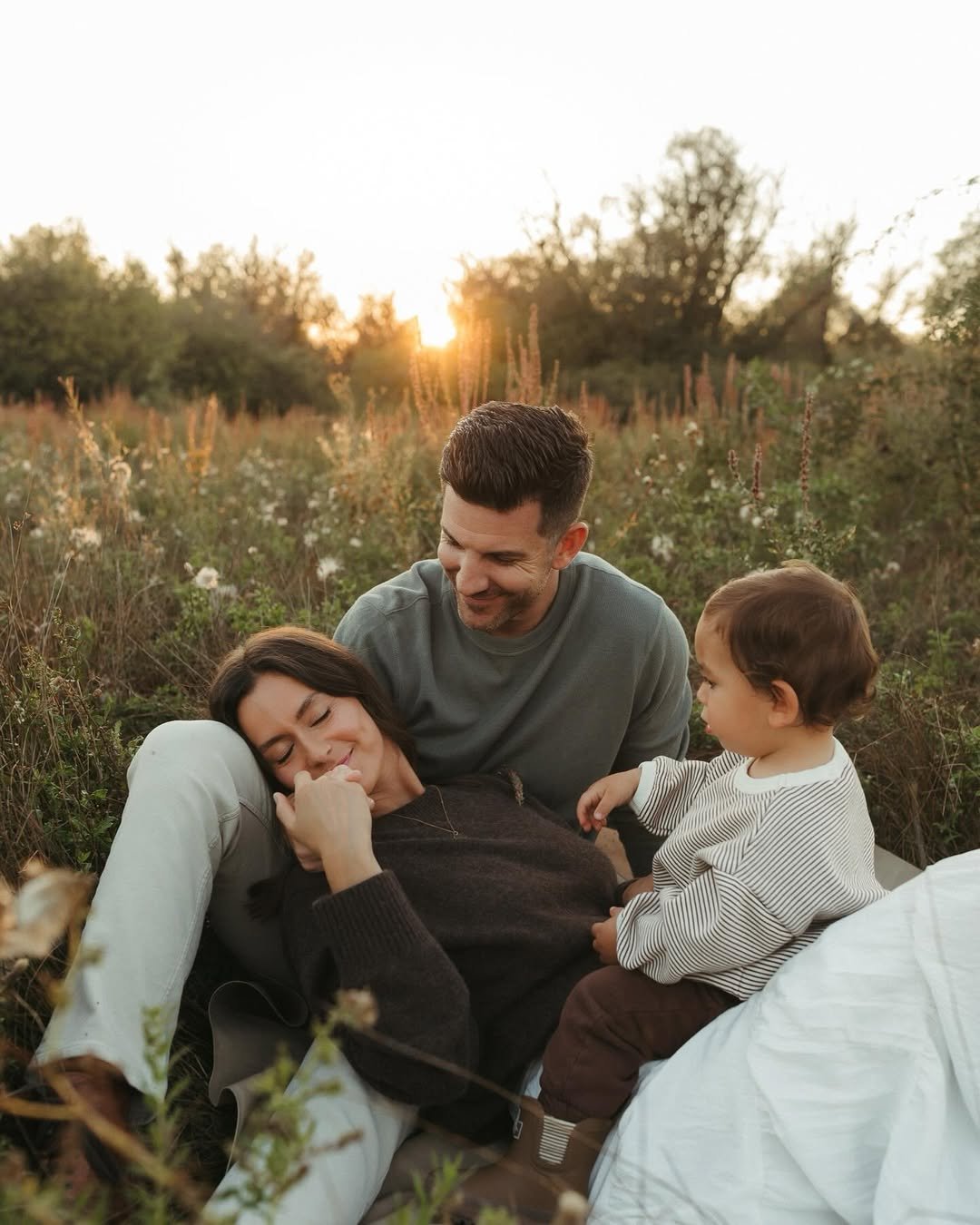 Laid-back but layered with intimacy, this one’s all about softness. The family is literally nestled into the wild—field flowers, sun-kissed brows, and tousled knits in warm neutrals. It doesn’t feel styled, it feels lived in.