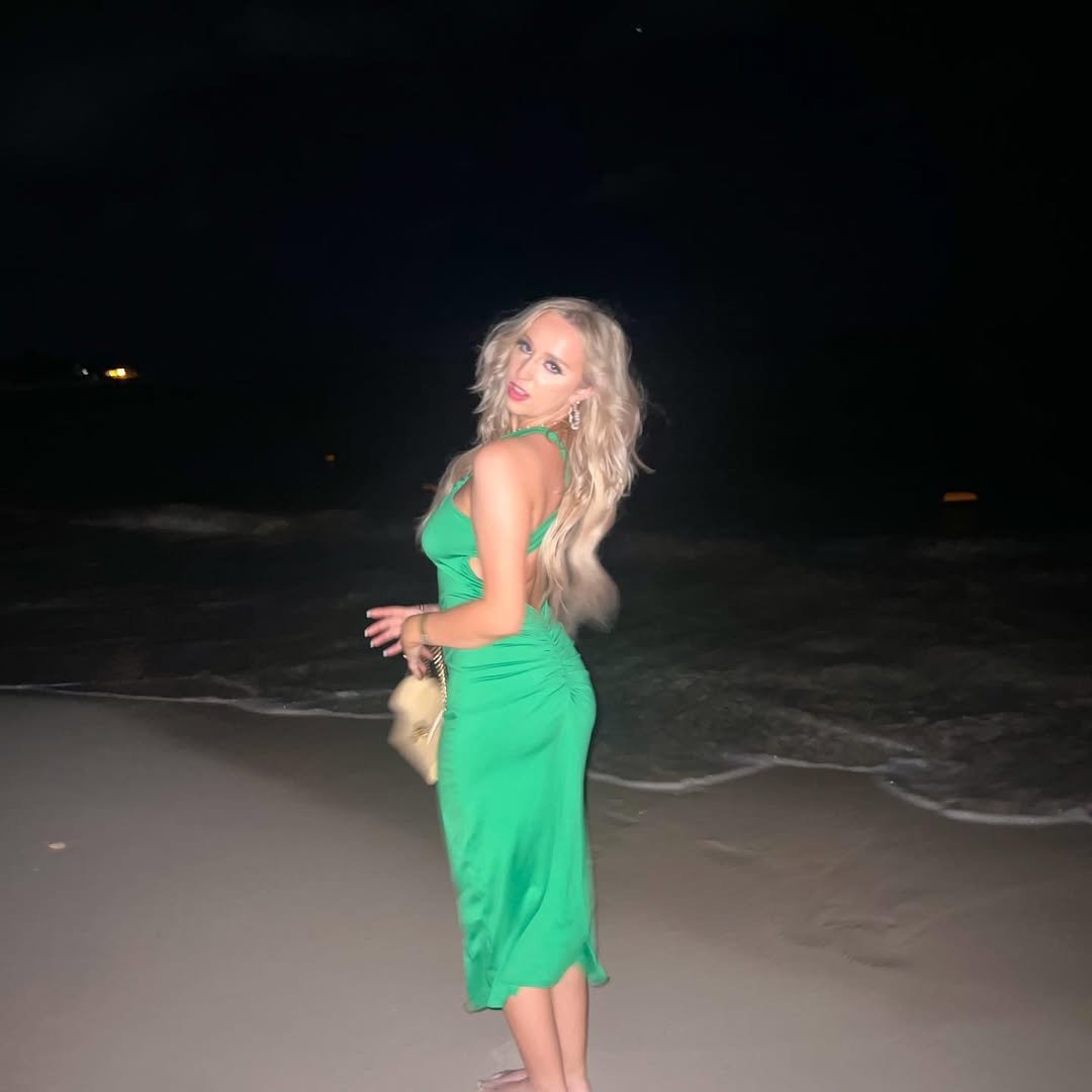 There’s something magical about a dress that looks just as good under moonlight as it would at a cocktail party. This sleek green silhouette hugs the body in a way that feels simple yet incredibly striking.