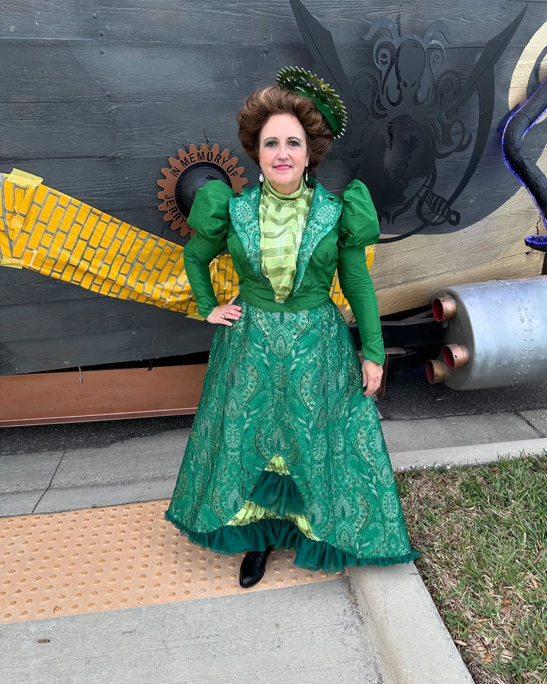 This outfit leans fully into joyful color and shape. The green palette paired with bold patterns creates a look that feels artistic and expressive, like a walking mood board of playful style.