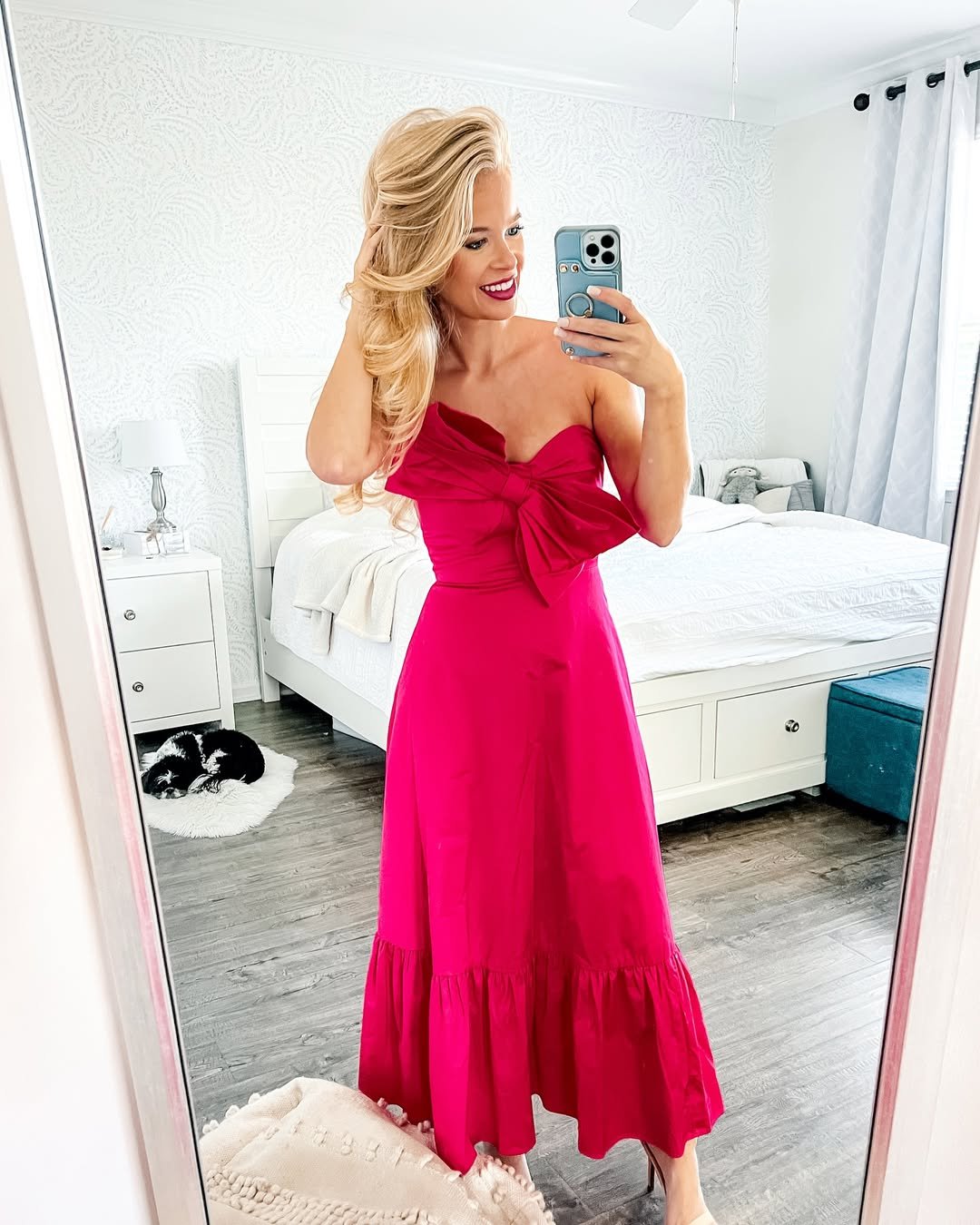 If you want to feel like the main character at your next holiday soirée, @coastal_blonde’s white tiered dress is your inspo. With its floaty fabric and soft shimmer, it looks like it was made for candlelit dinners and clinking glasses under twinkle lights.