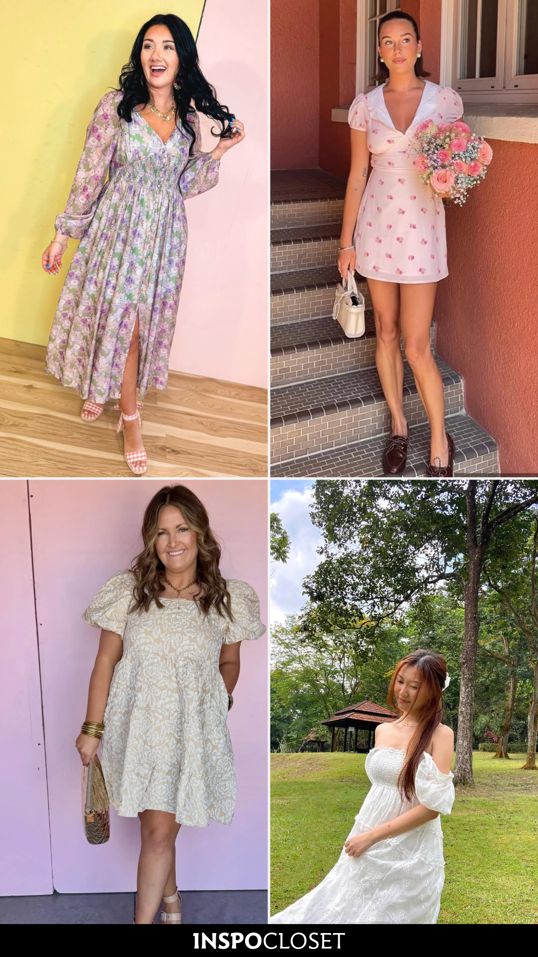 What really sells the moment is the setting. Surrounded by blooming flowers and soft pastel textures, the whole look feels like it belongs at a spring brunch where rosé glasses clink and the sun warms your shoulders. Add a floral headband and dainty earrings like this and suddenly the outfit feels less like a dress and more like a whole Easter mood.