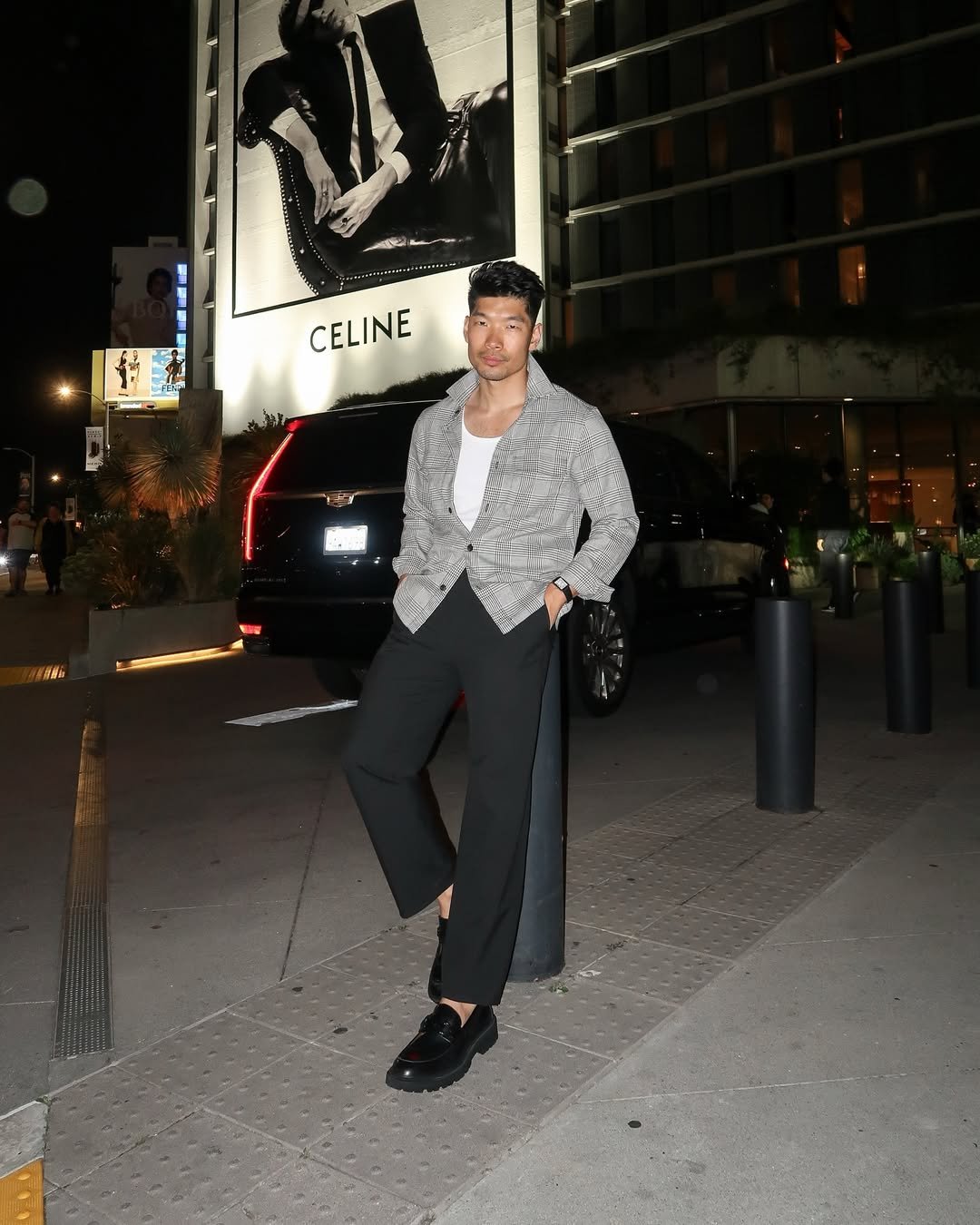 This is March after dark. Light layering, sharp tailoring, and footwear that means business. It feels intentional, like you dressed for the setting but didn’t overthink it.