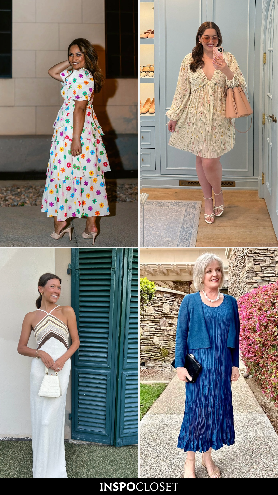 Paired with strappy heels and a soft blush handbag, the outfit feels polished but still lighthearted. It’s the kind of dress that makes getting ready feel a little more fun.