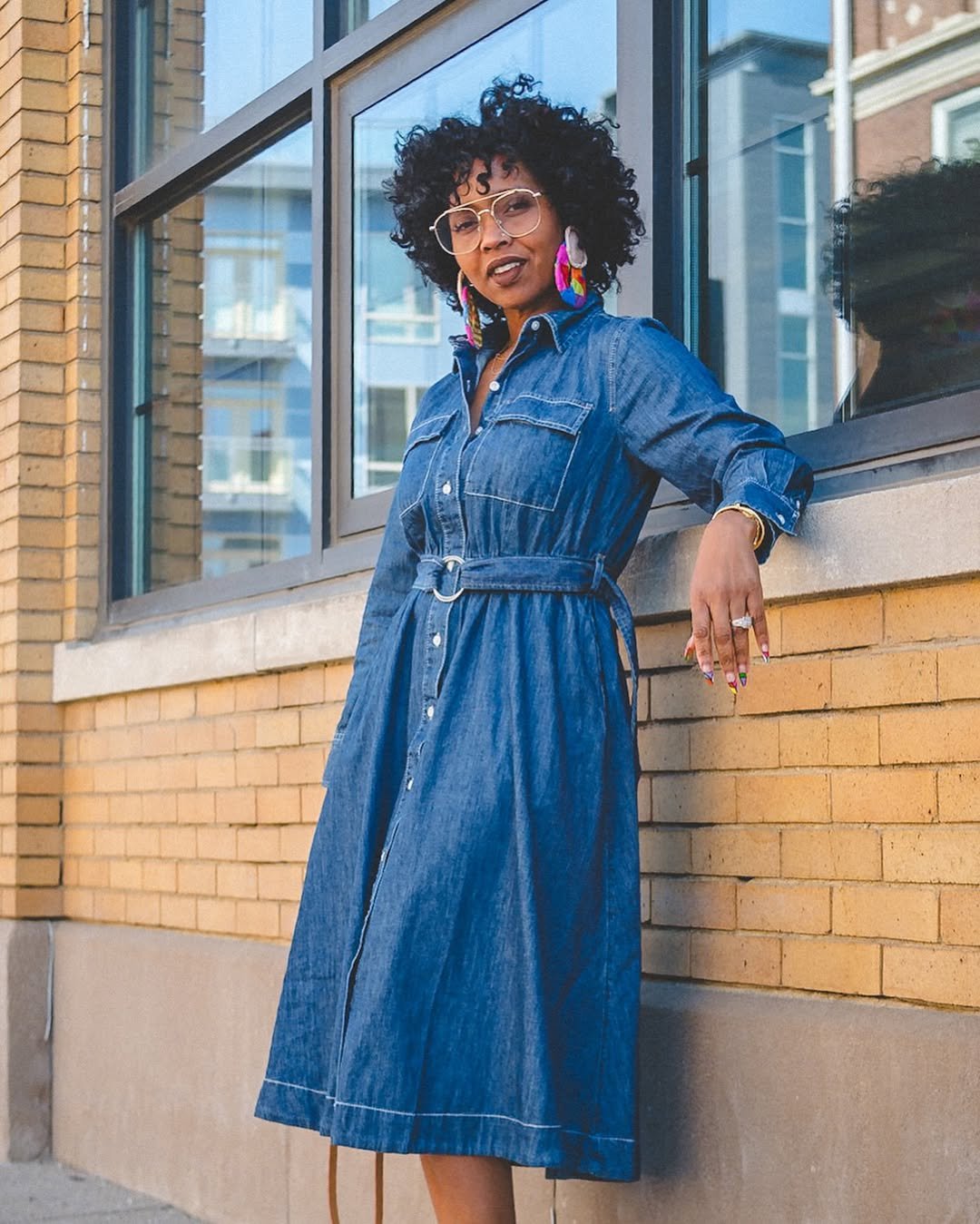 There’s something timeless about a good denim dress. The belted waist adds shape while the structured fabric gives the outfit that effortless everyday polish.