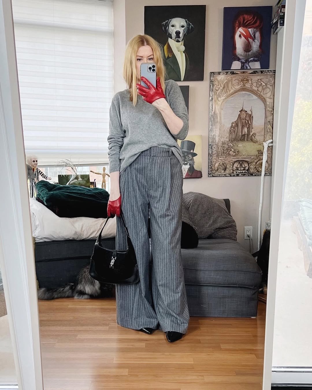 And those red gloves? A tiny detail that completely changes the mood. It’s a reminder that sometimes the smallest pop of color can make an outfit unforgettable.