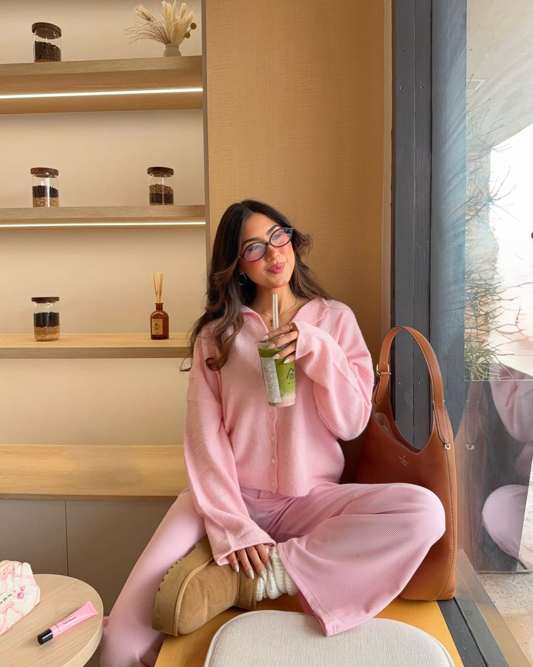 And then there’s the matching pink bag—subtle, but intentional. It ties everything together in that “I thought about this, but not too much” kind of way. Coffee in hand, confidence on—this is everyday styling done right.