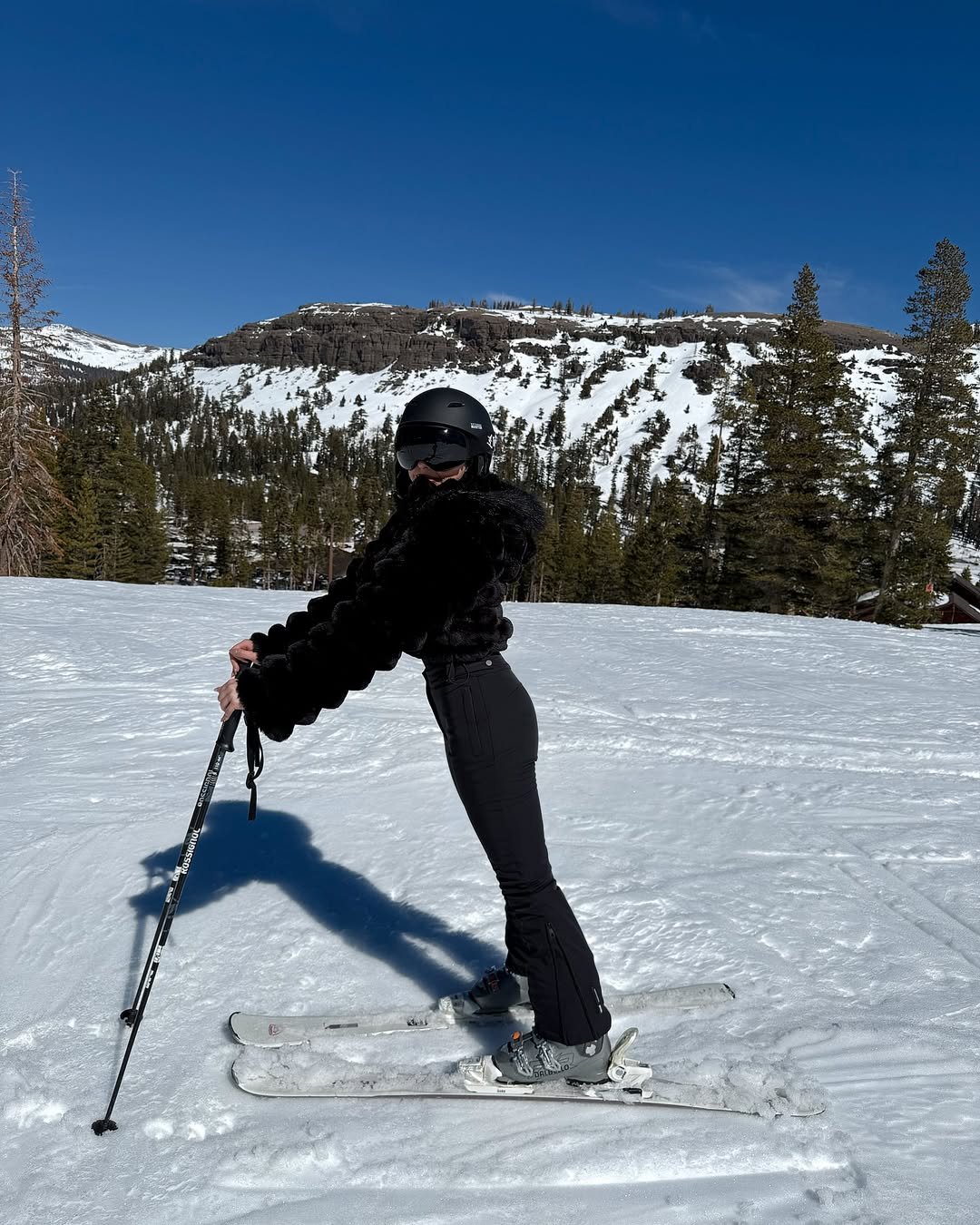 It’s the kind of outfit that transitions perfectly from the slopes to a fireside drink afterward. Minimal, chic, and just a little dramatic—in the best way.