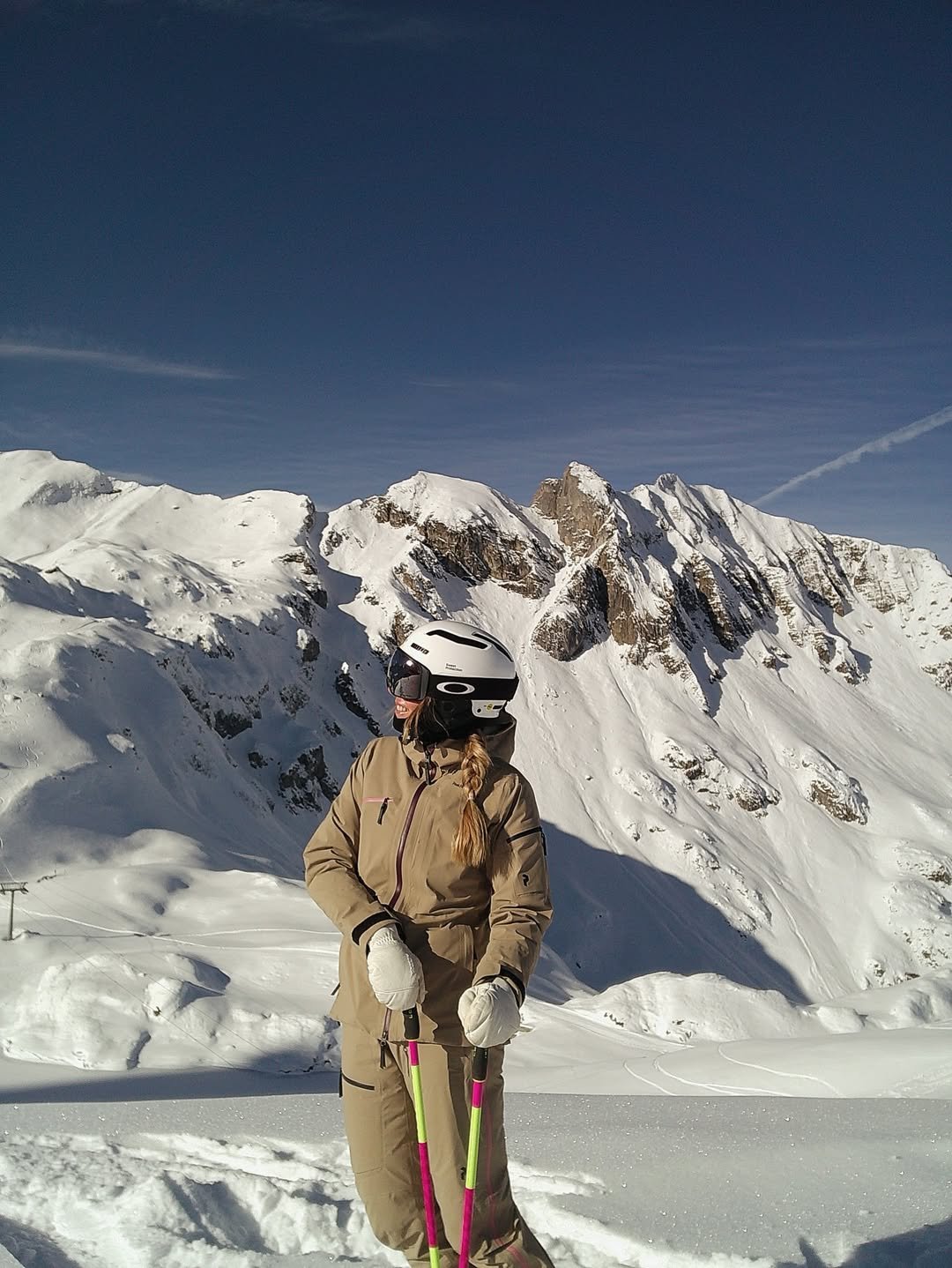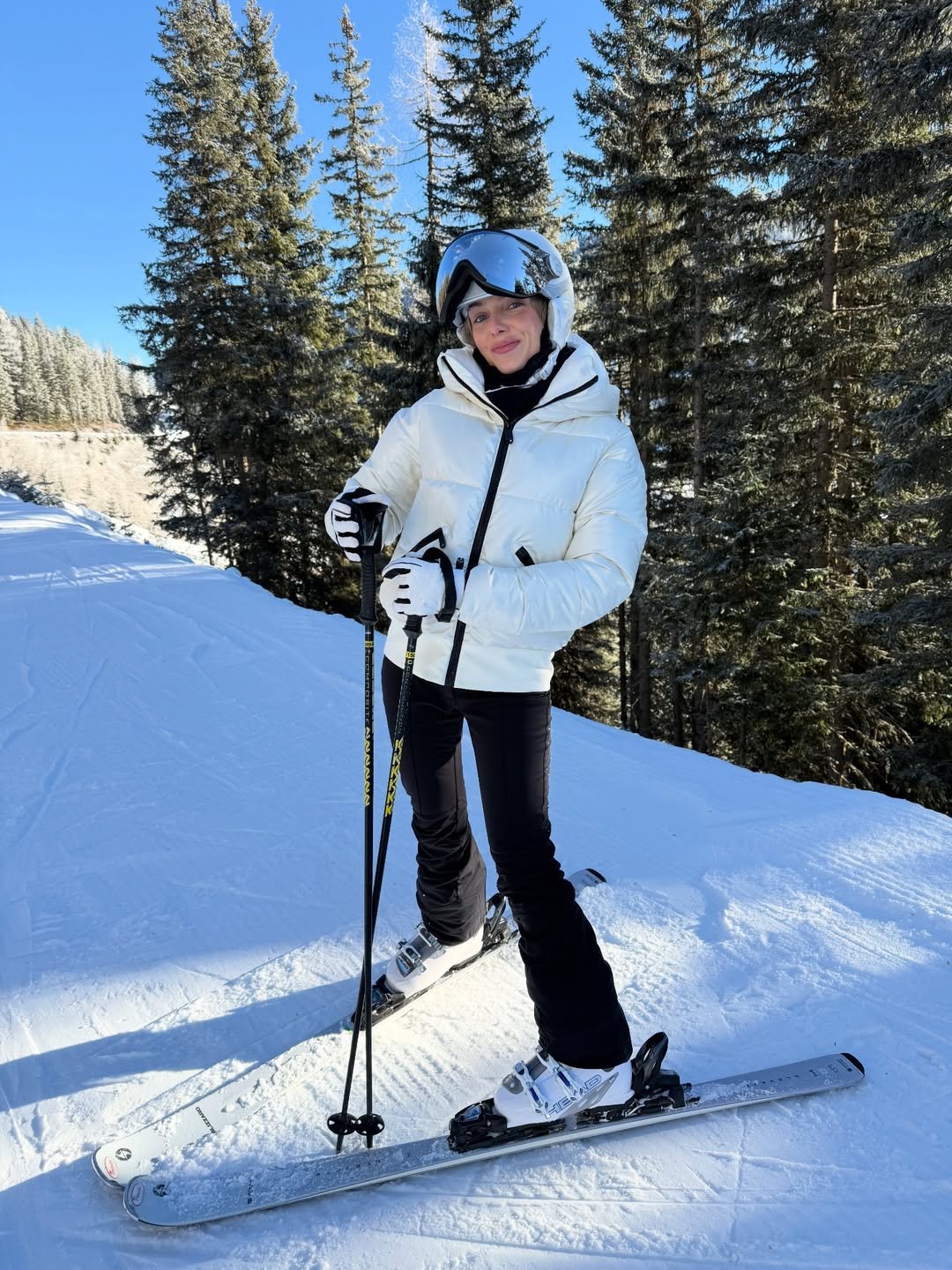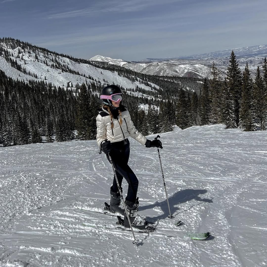 It’s the kind of outfit that feels easy and natural on the slopes—comfortable enough for a full day of skiing, but still polished enough for photos with those incredible mountain views.