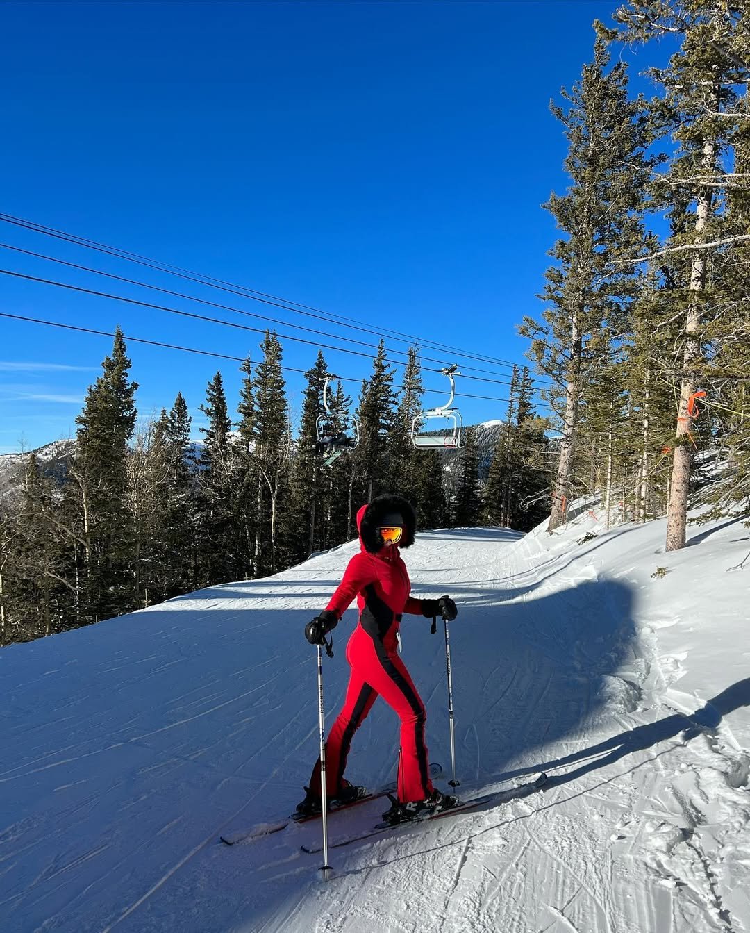 It’s sporty, bold, and full of confidence—proof that sometimes the best ski outfit is simply the one that refuses to blend in.