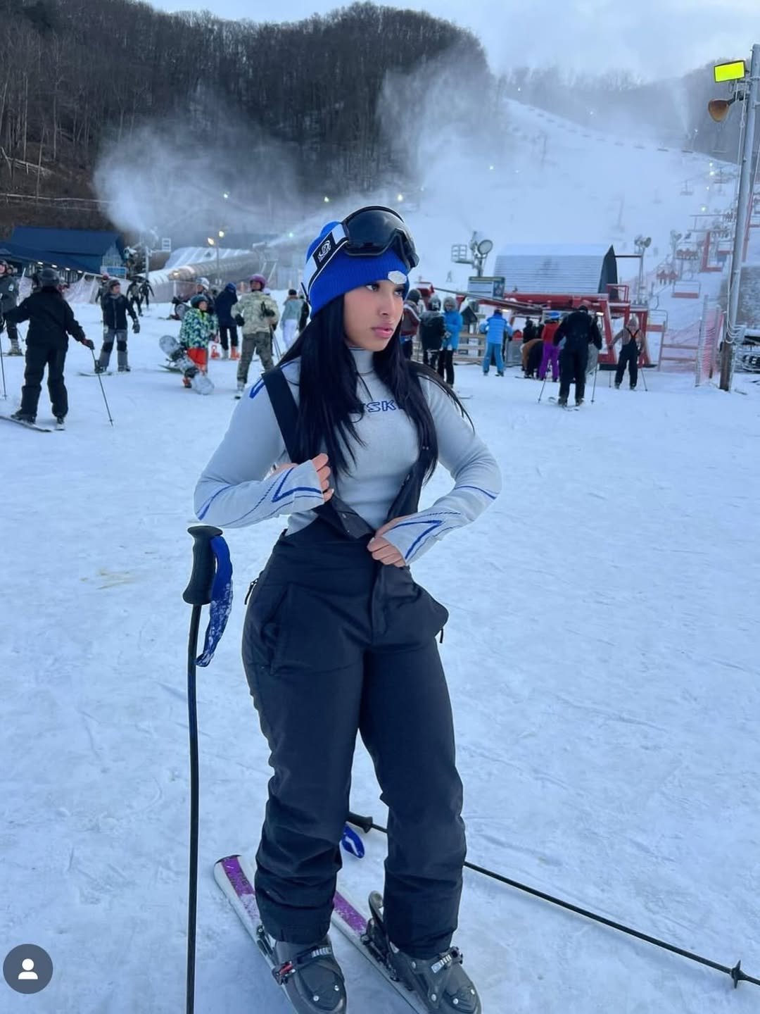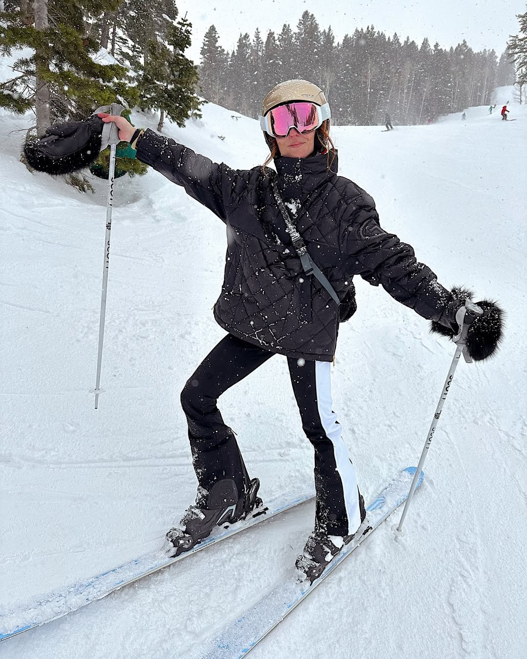 It feels practical but still stylish—like someone who’s here to actually ski, but still made sure the outfit was camera-ready before heading to the lift.