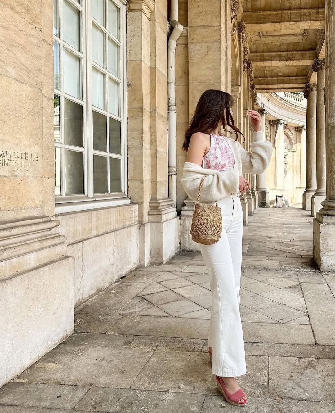 Paired with woven slides and a textured basket bag, it leans into that relaxed, sun-warmed energy. It’s effortless in the best way. The kind of look that feels just as right for brunch as it does for a slow Saturday stroll.