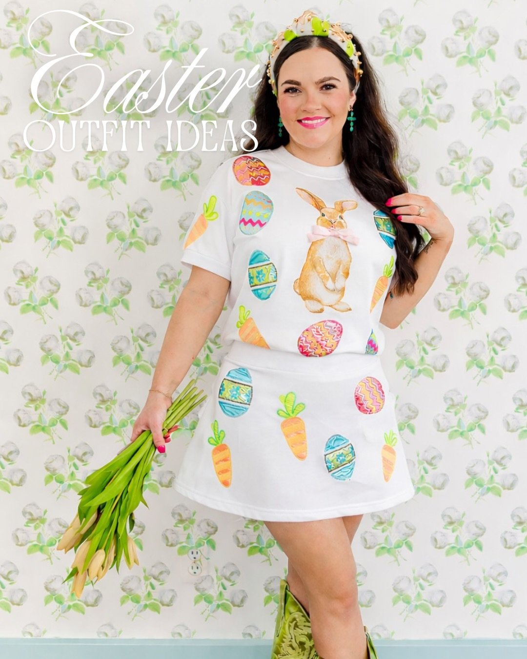 Add the statement headband and bright earrings, and suddenly the whole outfit feels like a celebration. It’s bold, playful, and perfect for anyone who loves leaning all the way into the festive side of Easter style.
