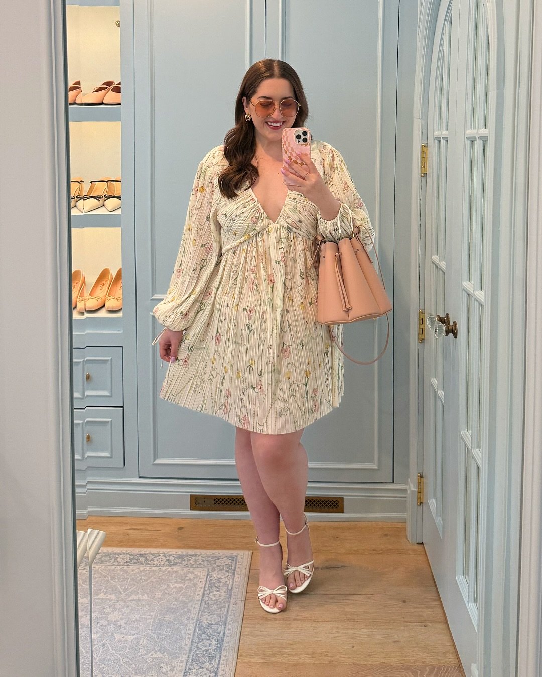 This little floral mini feels like a warm Easter afternoon wrapped into an outfit. The delicate pink print paired with puff sleeves gives it that sweet vintage energy that always feels right for spring.