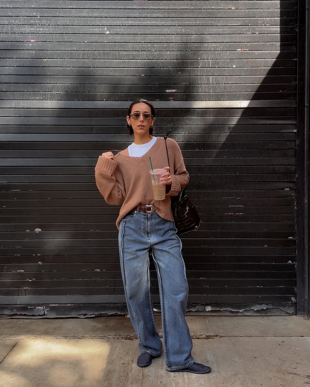 Holding an iced coffee like an accessory is a mood in itself. This is the kind of outfit that makes a simple errand feel like a style moment.