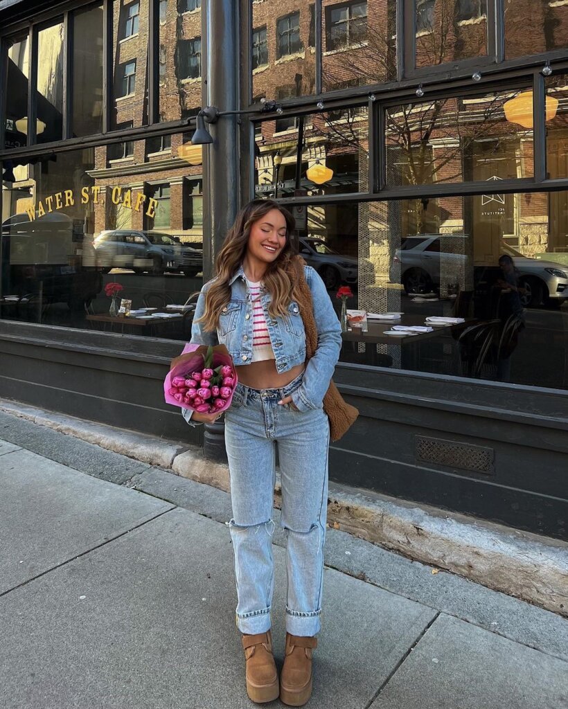 This look feels sweet without trying too hard. Feminine details meet relaxed denim in a way that feels natural and wearable.
