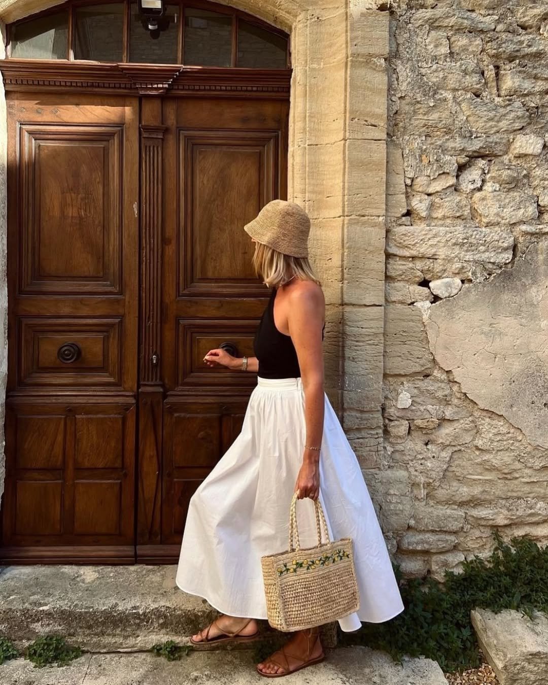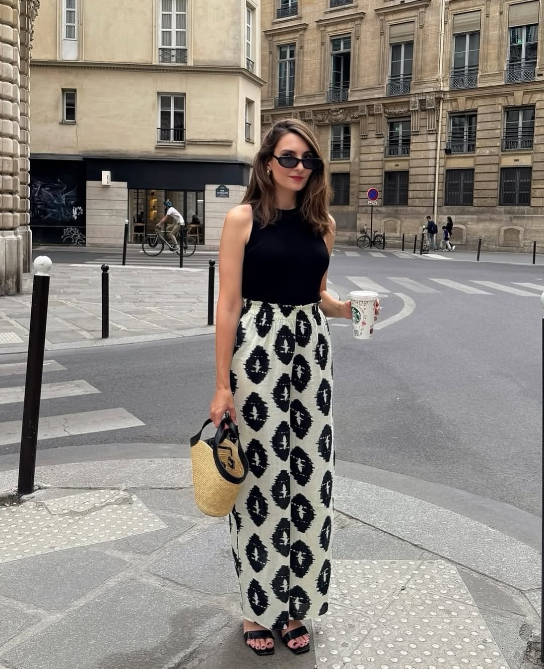Black and white in summer always feels crisp and timeless. A fitted black tank paired with a flowing white skirt creates that beautiful contrast that never really goes out of style.