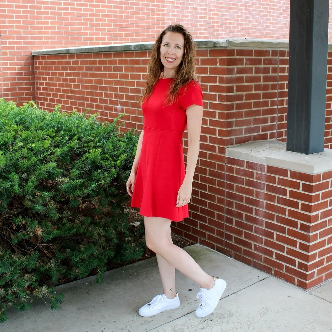 A bright red dress always brings a little energy into the day, and this one does it in the most effortless way. The clean silhouette and short sleeves keep things simple, letting the bold color do all the talking.