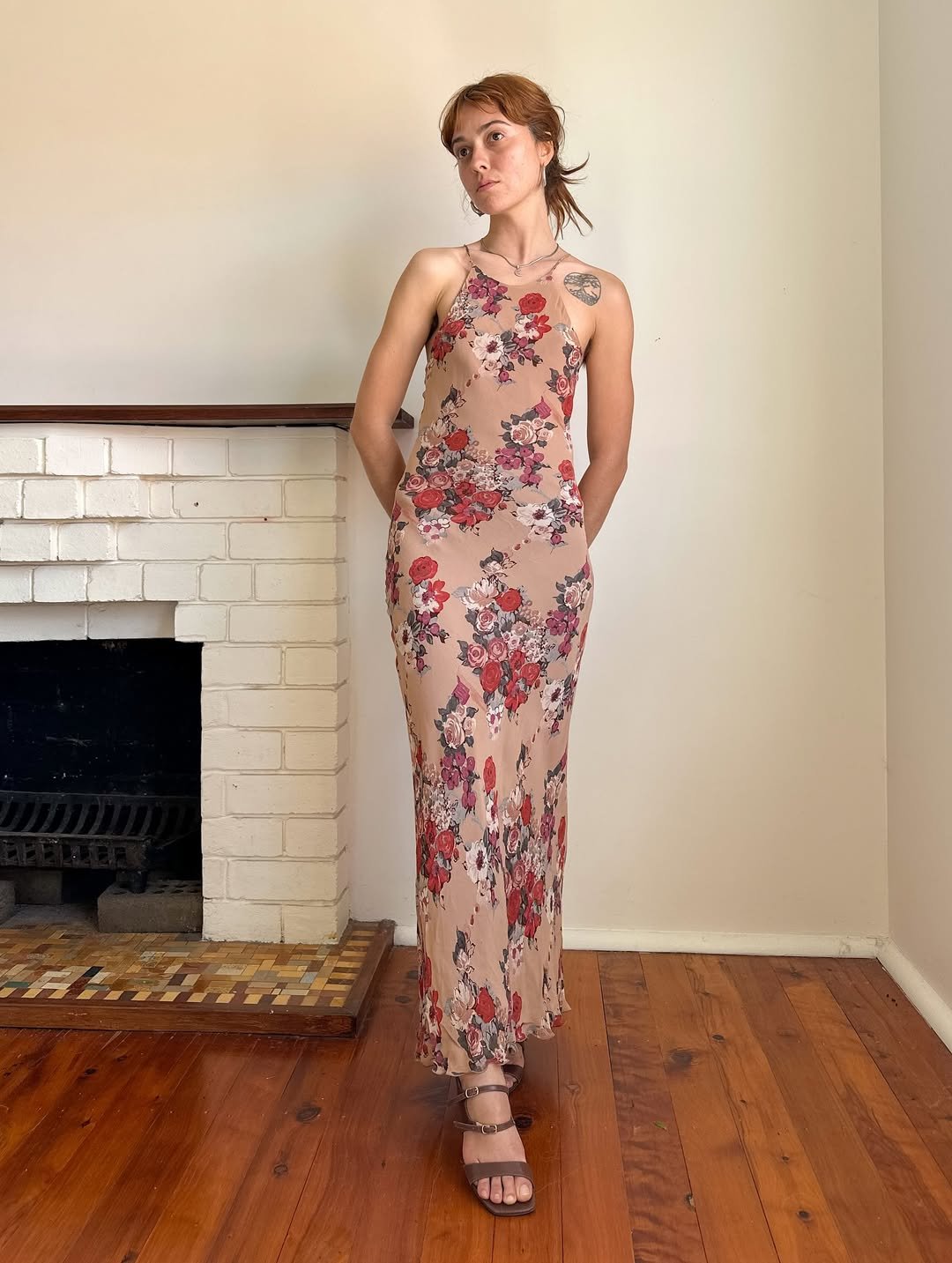 This floral slip dress feels delicate and a little undone in the best way. The soft mesh fabric skims the body, while the muted rose print keeps it romantic rather than loud.