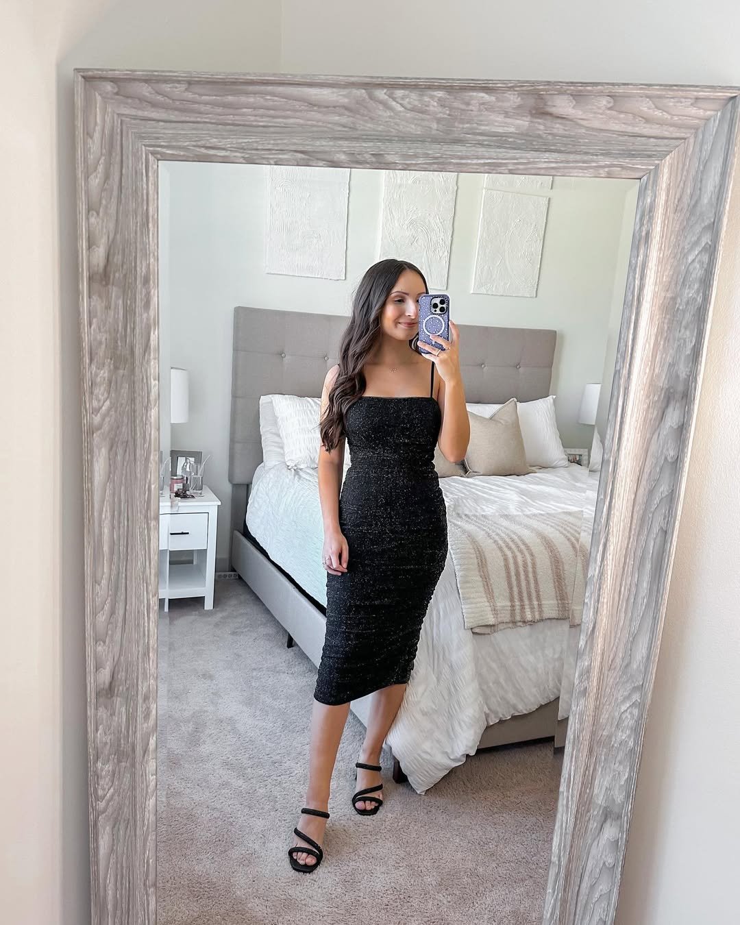 Styled with minimal black sandals and soft waves, the look feels relaxed but still polished. A reminder that sometimes the simplest outfits end up being the most effortlessly chic.