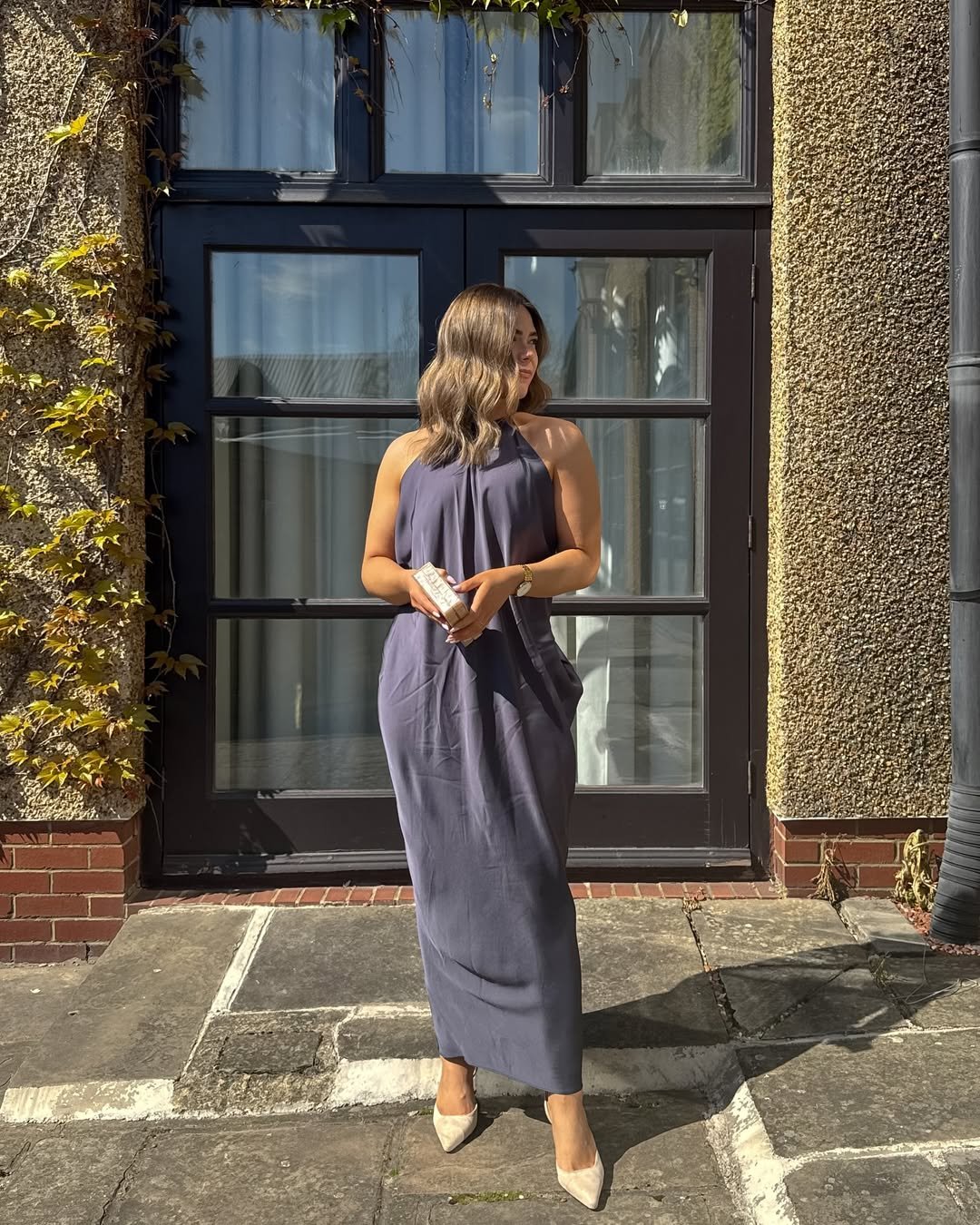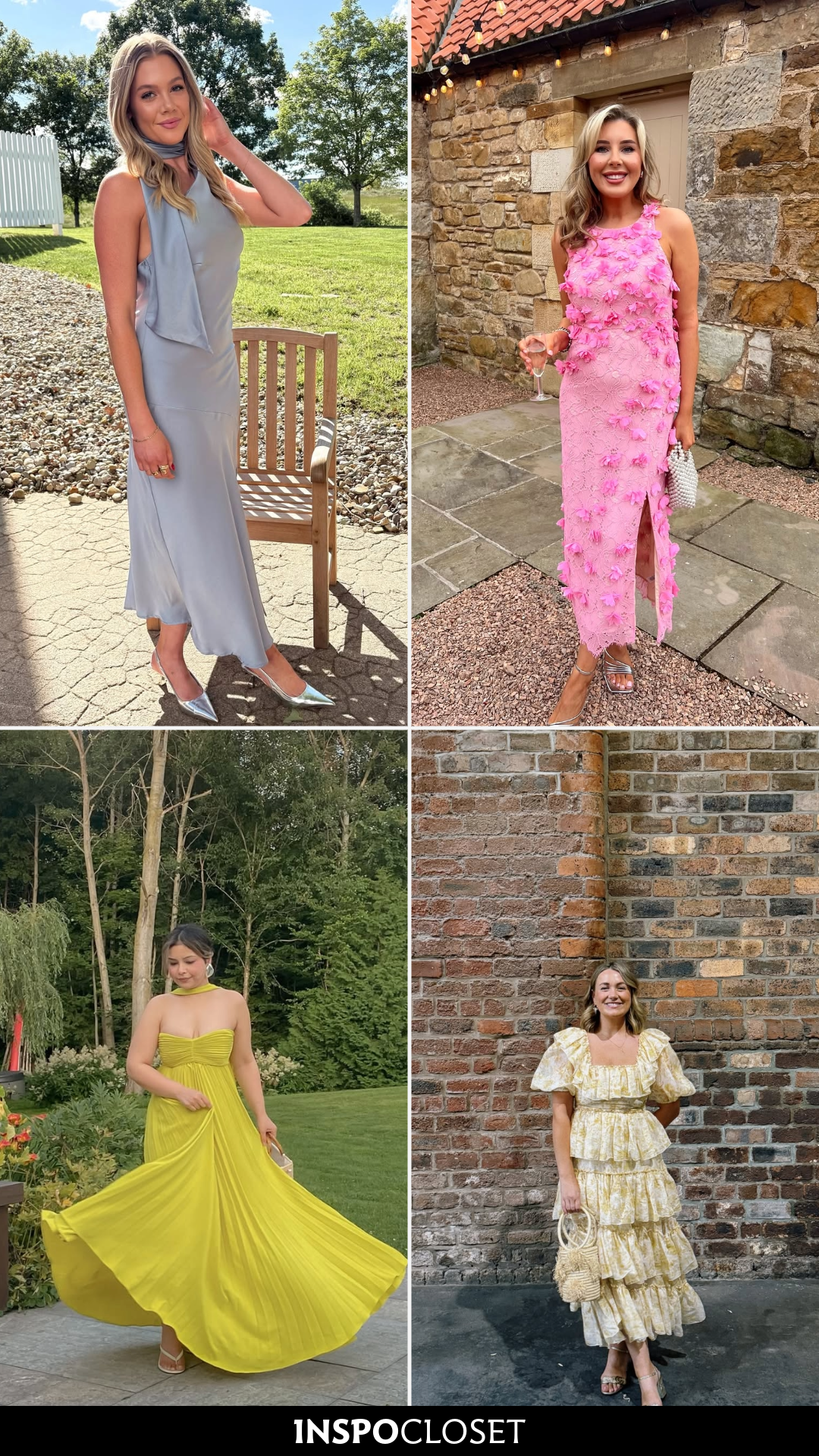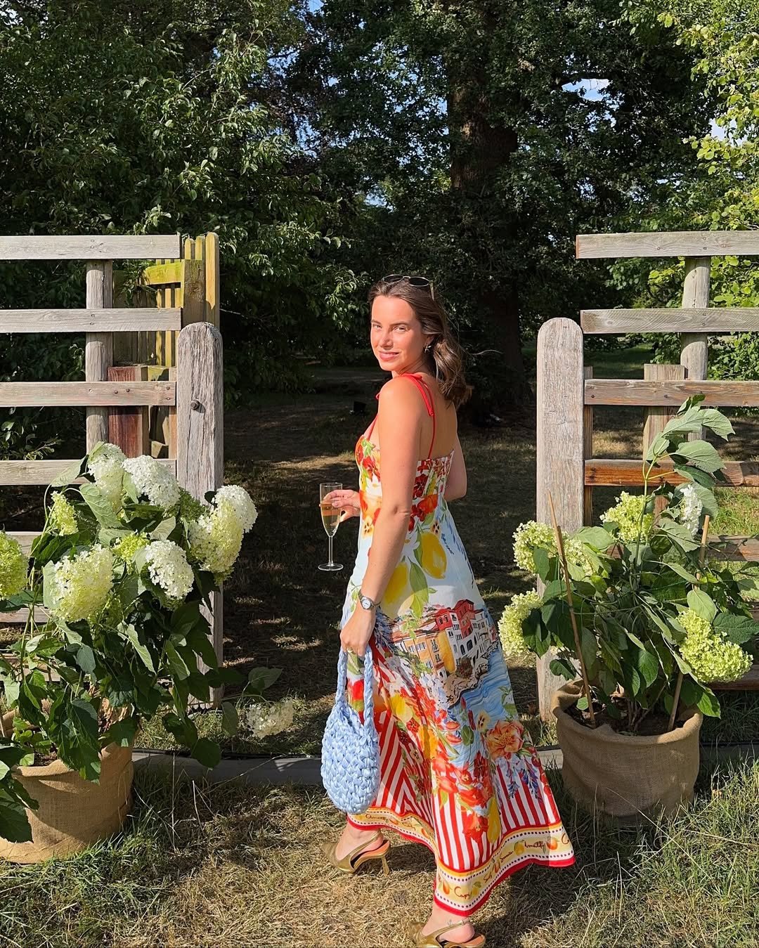 The woven blue bag and relaxed heels keep the whole look light and effortless. It’s proof that wedding guest style doesn’t always need to be serious. Sometimes a little sunshine energy is exactly what the dress code calls for.