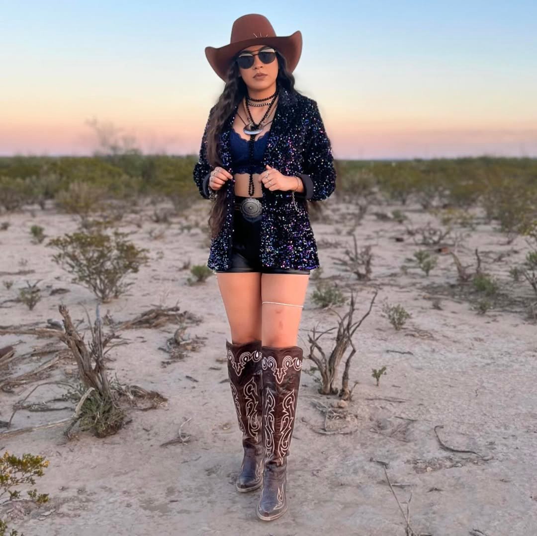 There’s a sweetness to this look, but the structure keeps it from feeling too soft. It’s rodeo-ready with a little glam twist, like you showed up for fun and stayed for the photos.