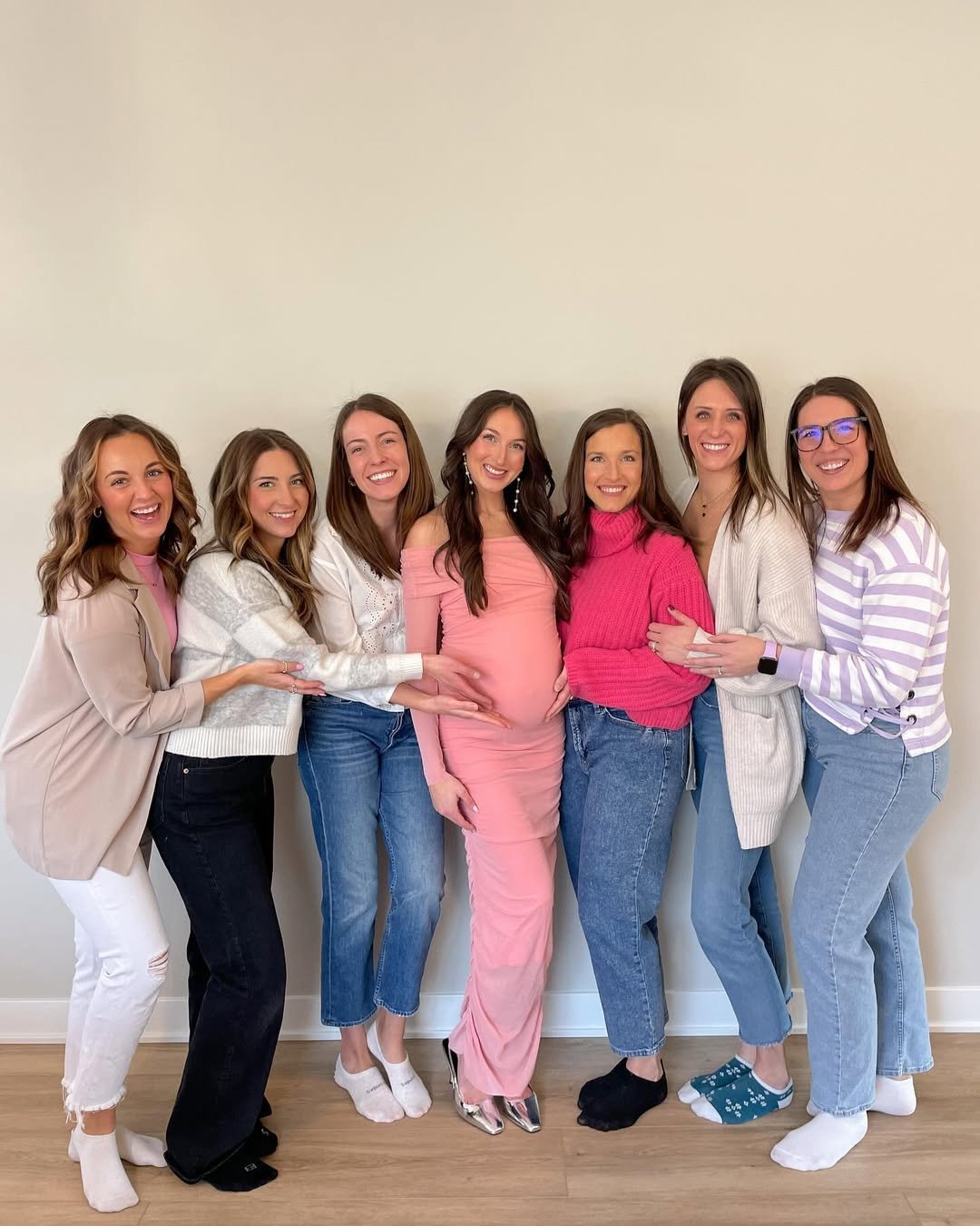 Last but not least, @krystataylorr’s group photo might just be the ultimate inspo board for a luxe baby shower. From champagne pleats to rich florals and silky dots, this friend group nailed the quiet luxury dress code in the most charming way. And the mama-to-be in warm rust polka dots? Effortlessly radiant.